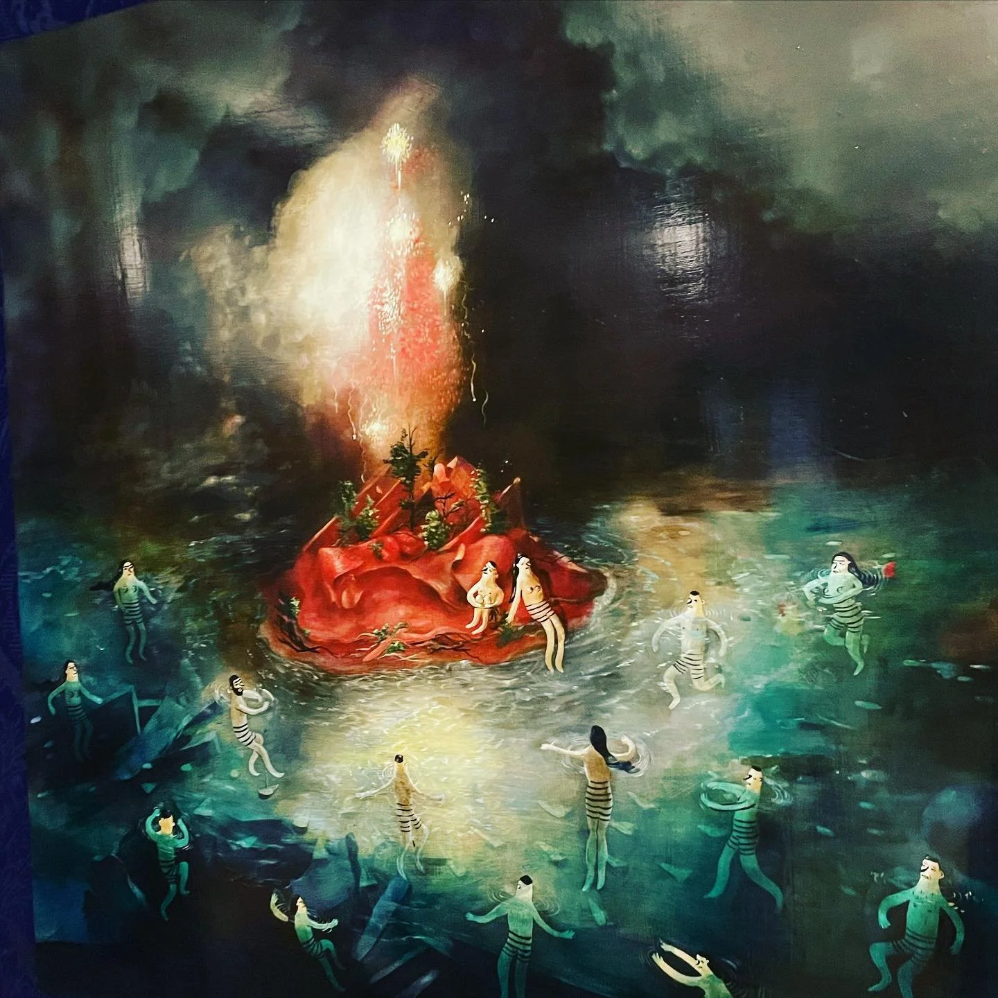 Since their youth, Caitlin and Nicole Duennebier have been creating foreboding landscapes and narratives. Both have grown to have wildly different styles, but their work still is commingled and speaks of the woods and stories made up from their childhood. Caitlin’s robust characters inhabit Nicole’s mystical, otherworldly landscapes—drinking, smoking cigs, laughing, and crying. The stark contrast creates a solid connection to the worlds that each artist creates, exemplifying what can be possible when their two techniques collide.