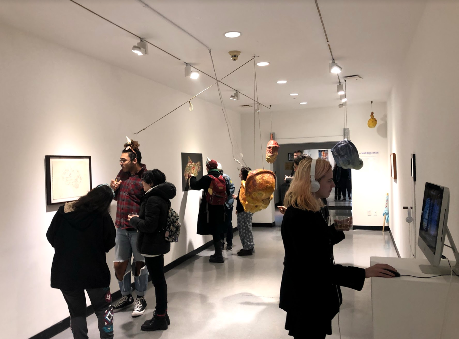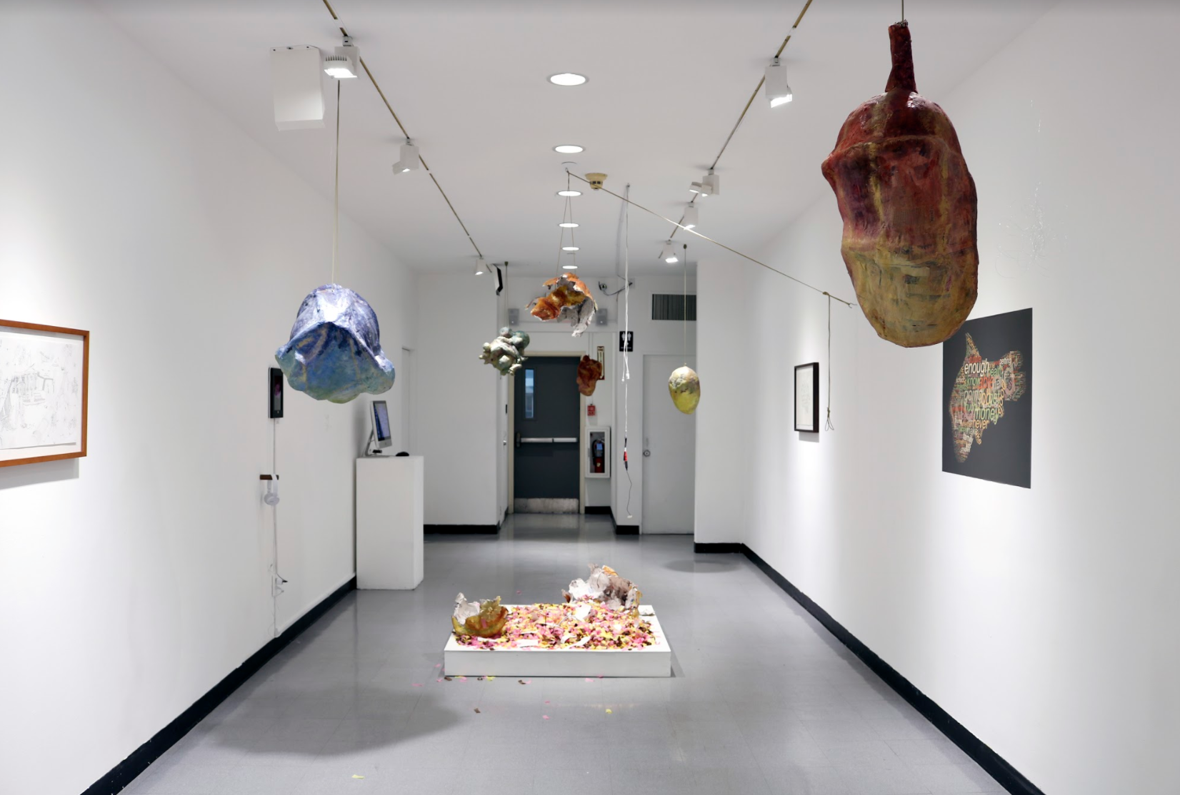 Worries Bash is a participatory installation consisting of recorded worries collected from hundreds of people and presented as part of a continuous audio portrait emanating from fragile papier-mâché sculptures. Worries Bash is conceived by the artistic duo Caitlin and Misha. The pair create artworks that play with culturally relevant, yet sometimes utopic examples of sharing communities, livable ecologies, and the transmutation of waste. They employ drawing, design, and sculptural techniques within a contemporary framework of interactive media and participatory installation. In addition to exploring ecology, media, and alchemy, they create artworks that provide unique opportunities for shared experiences and group-based rejuvenation, such as sweating, meditating, humming, jumping, and worrying together.